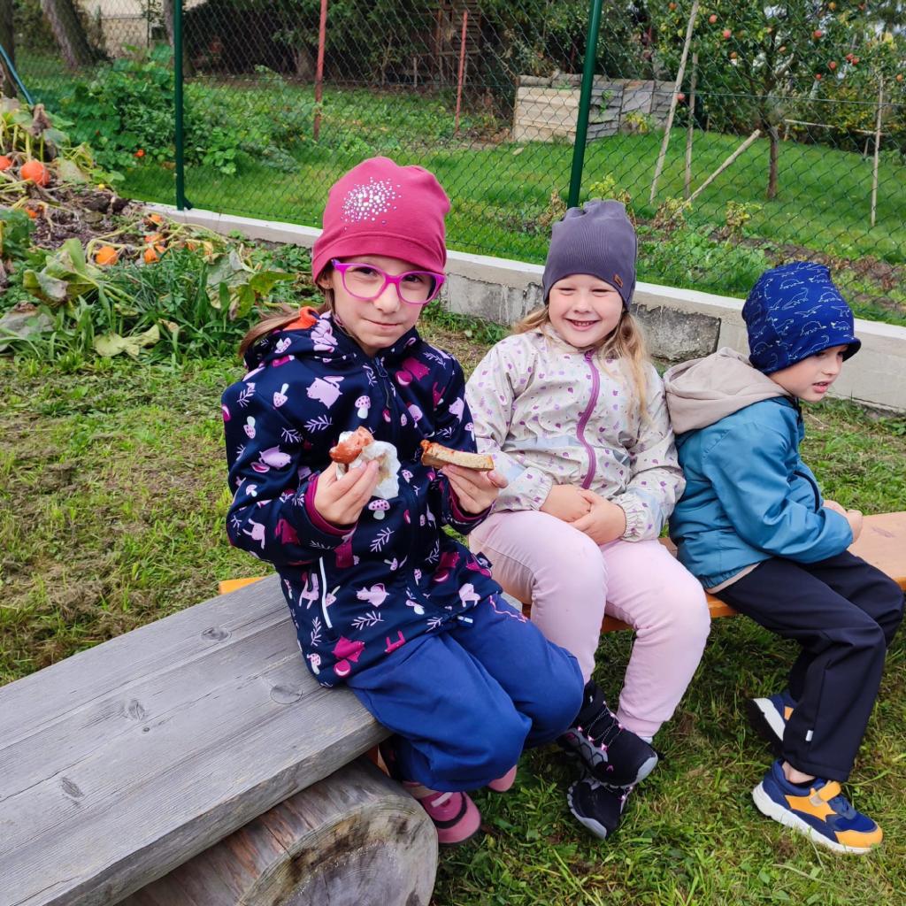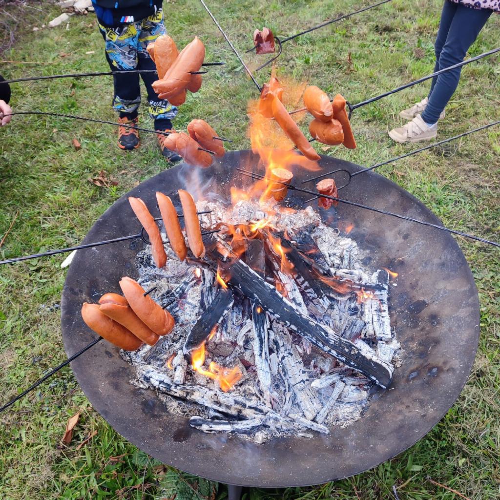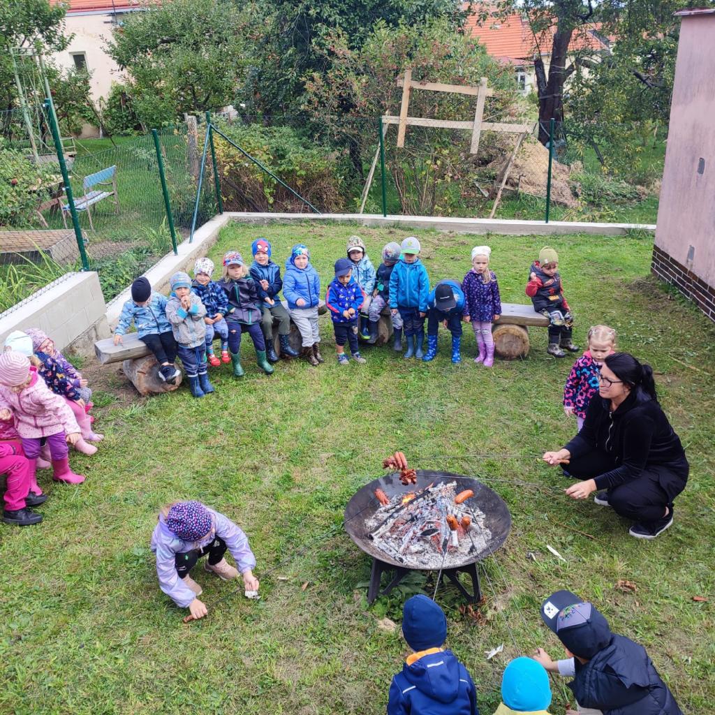 Opékání buřtíků na zahradě MŠ.